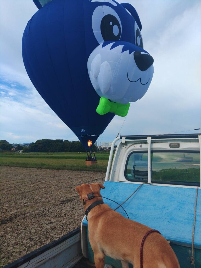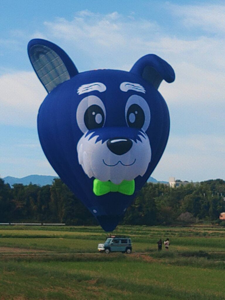 途中、田んぼの真ん中で何やらデッカイ、ネコ?が浮いて居ます。近づいてみますと、バルーンです。普通、熱気球は、丸い形して居ますが、デッカイ、ネコです。